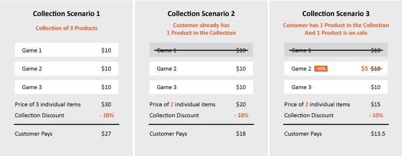 해당 그룹에서 출시한 Game이나 DLC를 묶음 상품으로 등록해, 상시 할인을 적용할 수도 있고, 할인율 없이 세트 상품 구성을 해 둘 수 도 있습니다.