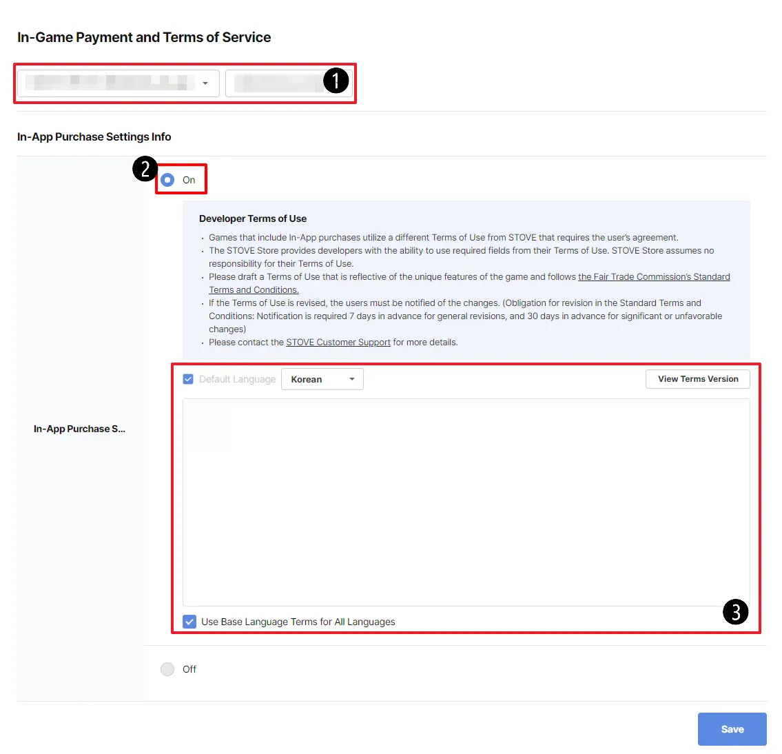 You can On/Off In-Game Purchase Settings, and regsiter Terms of Use here.