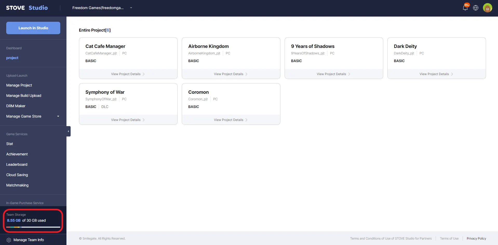 For every project in STOVE Studio, 30GB of Team storage is allocated.