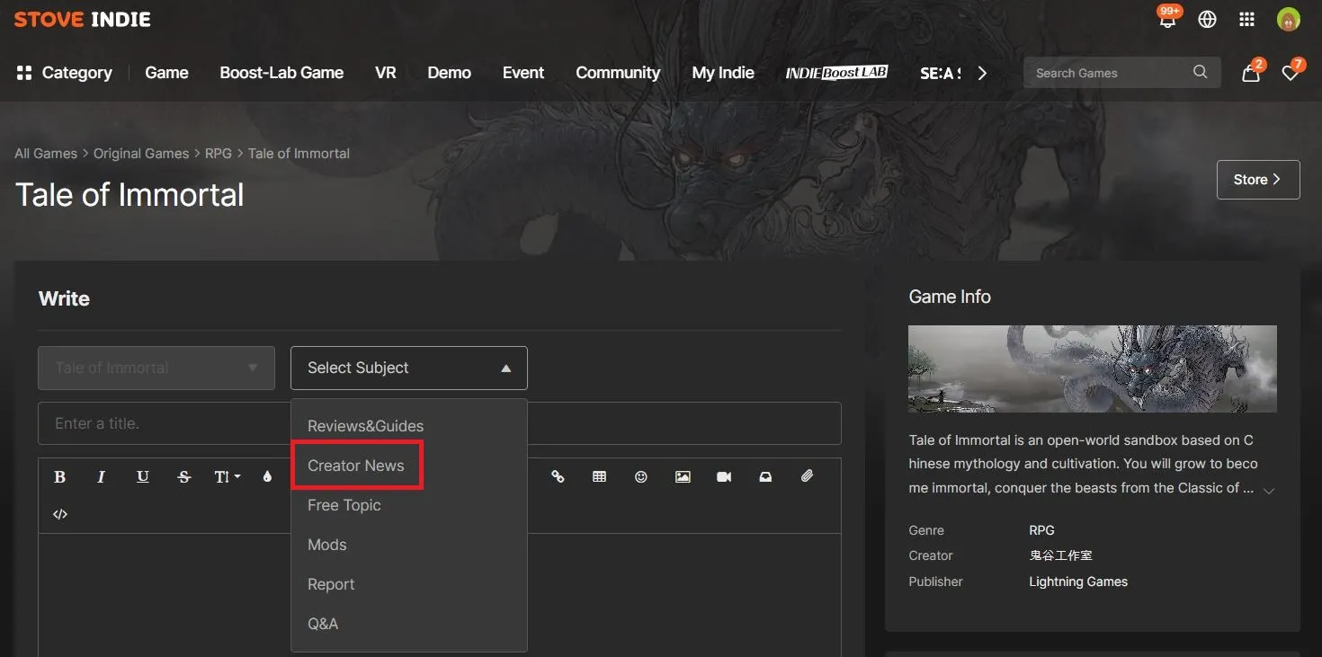 If you encounter any issues when writing a post, do not hesitate to contact STOVE Store.