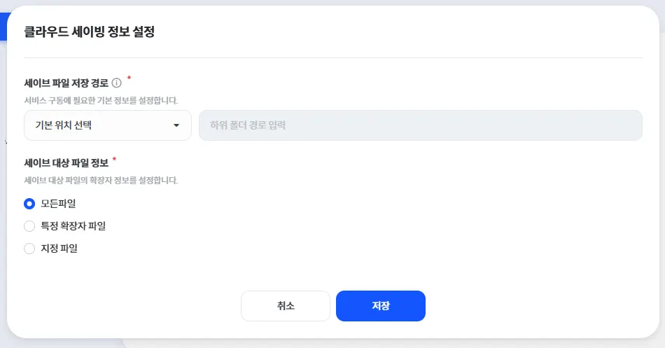 수정 : 클라우드 세이빙 설정에서 수정을 클릭하여 세이브 파일 저장 경로 또는