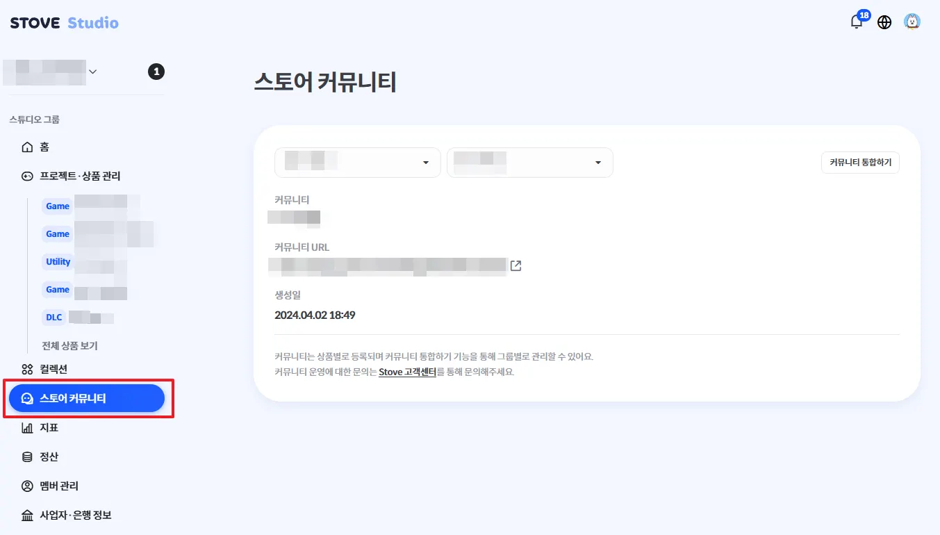 따라서 같은 프로젝트의 상품이 준비 중일 경우 출시 전에 커뮤니티를 통합하시는 것을 권고드립니다.