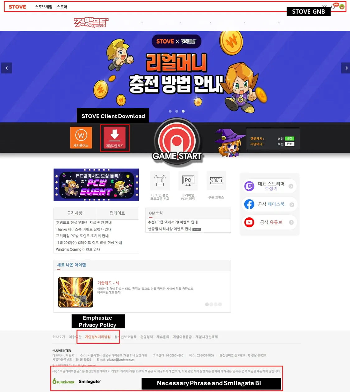 Smilegate BI | Add Smilegate BI in the footer, next to your (deveoper’s) BI |