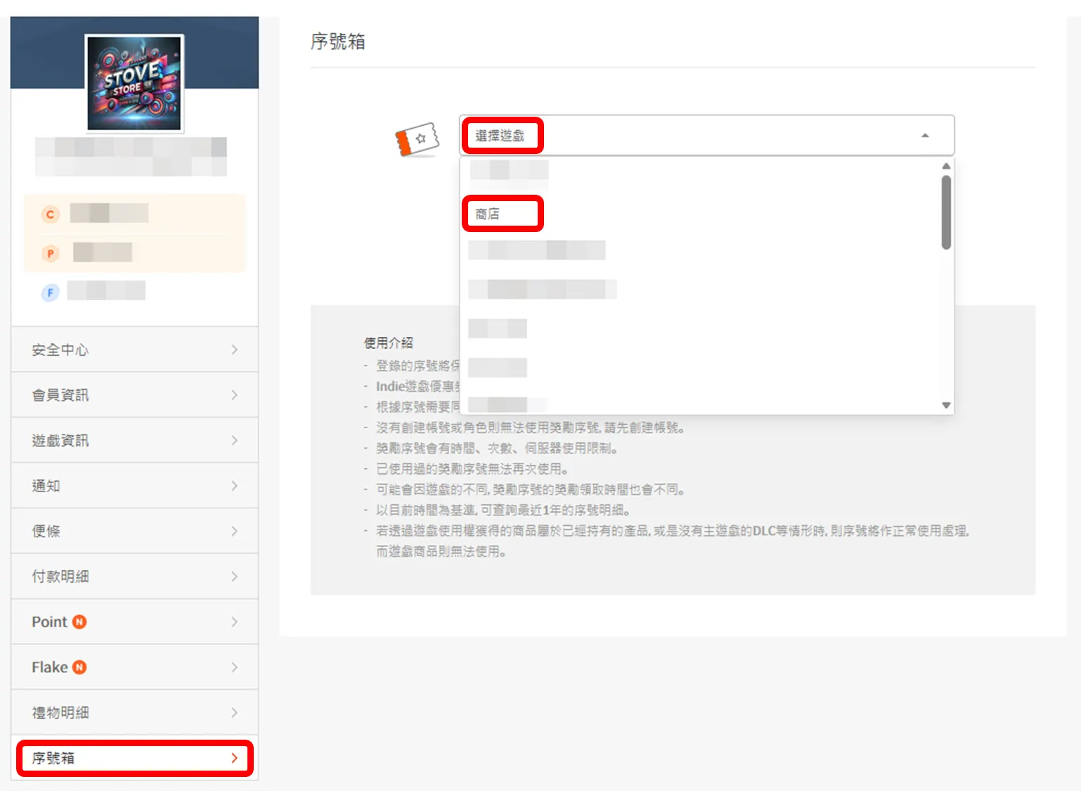 2. 點擊左下角的【序號箱】後,於列表中選擇【商店】。