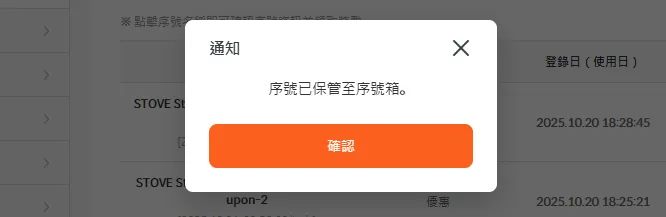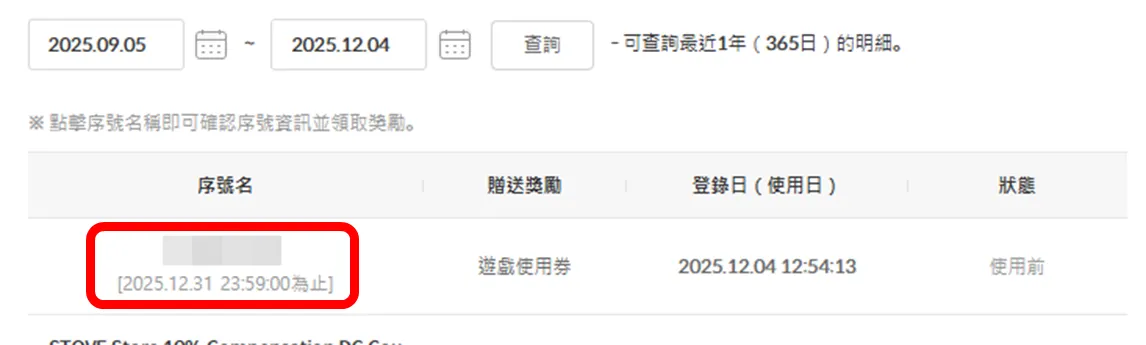 在遊戲使用權輸入選單下方,點擊已輸入的遊戲使用權。(請參考下方截圖)