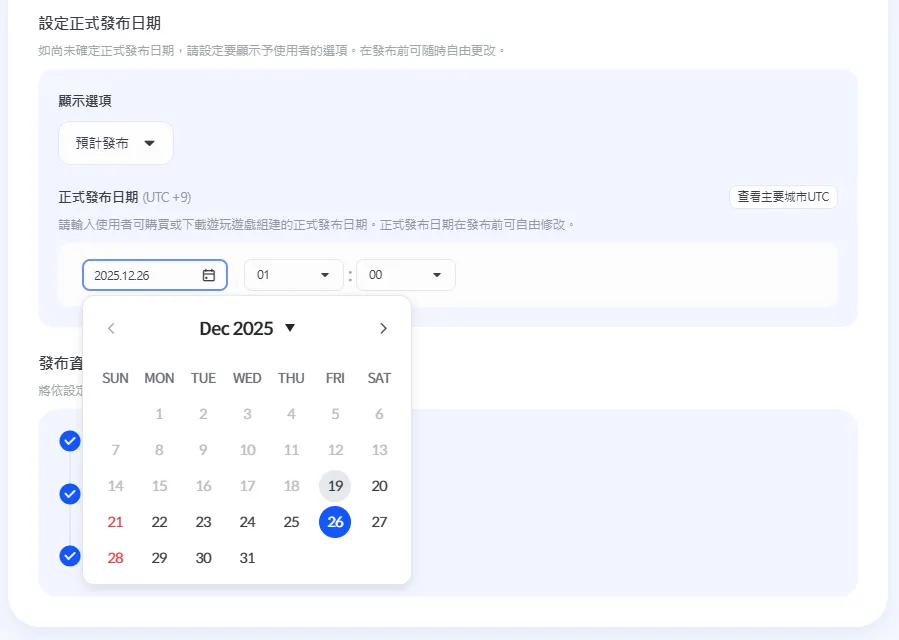 先選擇可設定的最早發布日期並提交審核