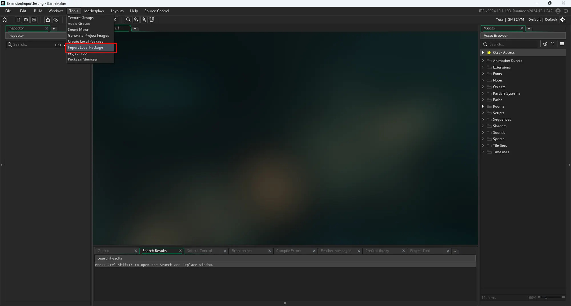 Click Tools > Import Local Package, then select the downloaded file.