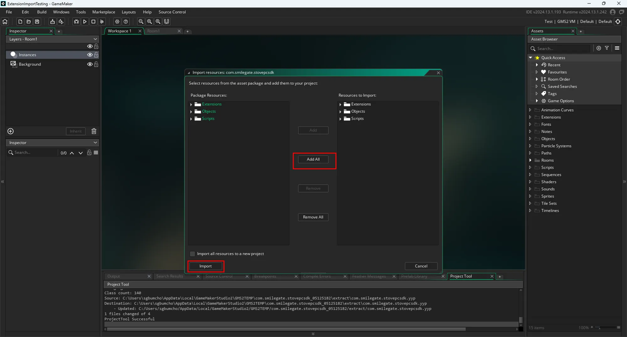 Click Add All to select all resources, then click Import.