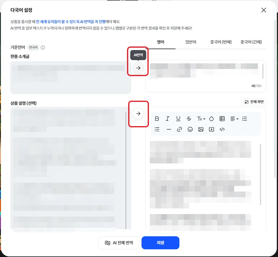 If you don’t have other language text ready, click AI Translate All and Save to fill in multilingual settings.