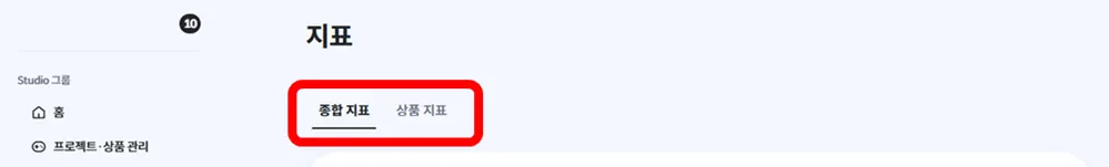 ① 스튜디오 로그인 → ② 좌측 하단의 “지표” 메뉴 클릭