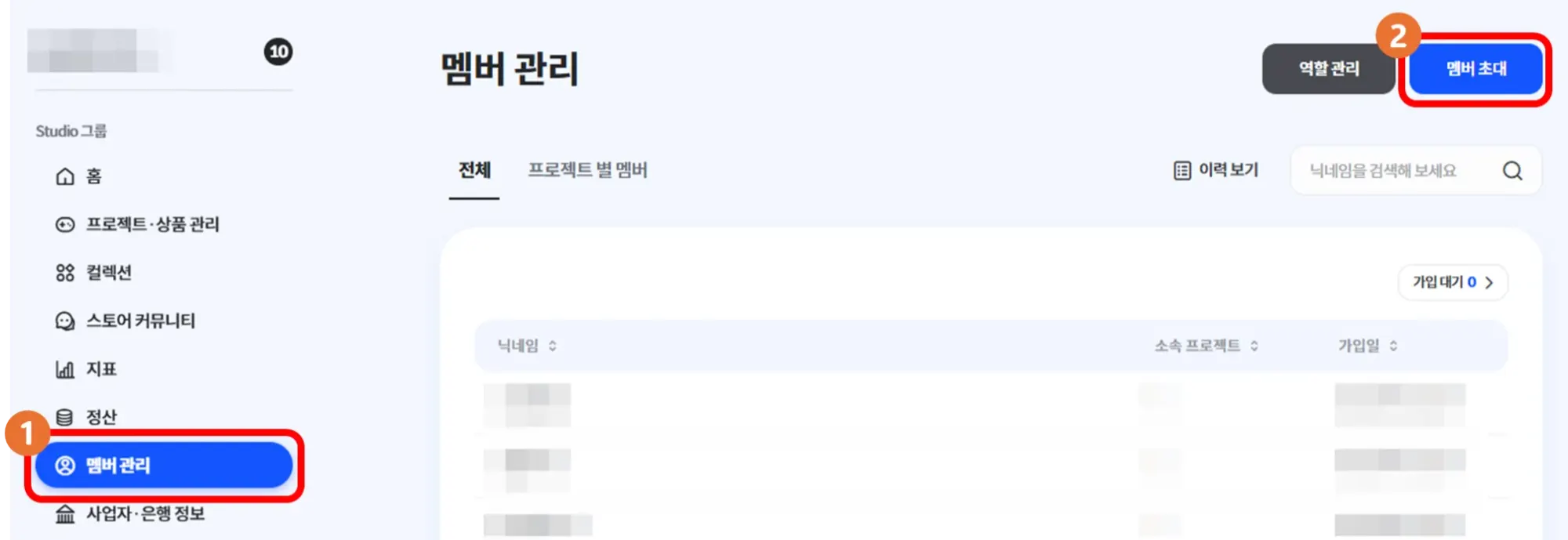 생성한 프로젝트에 구성원을 초대하는 법을 안내합니다.