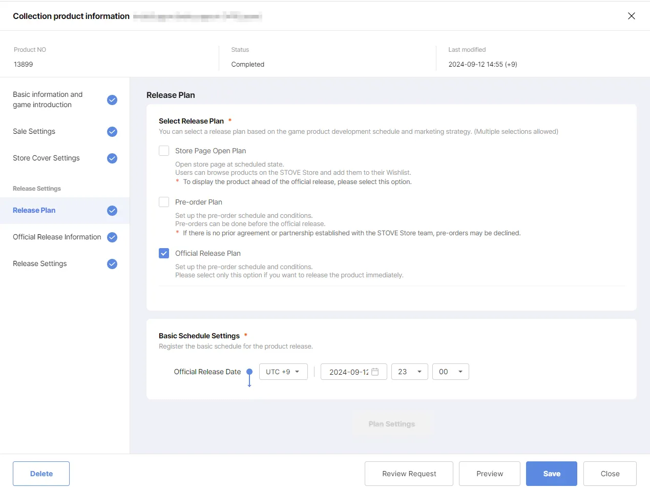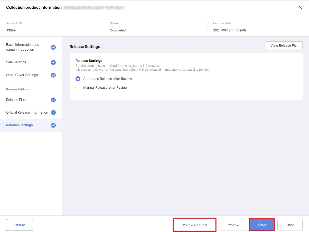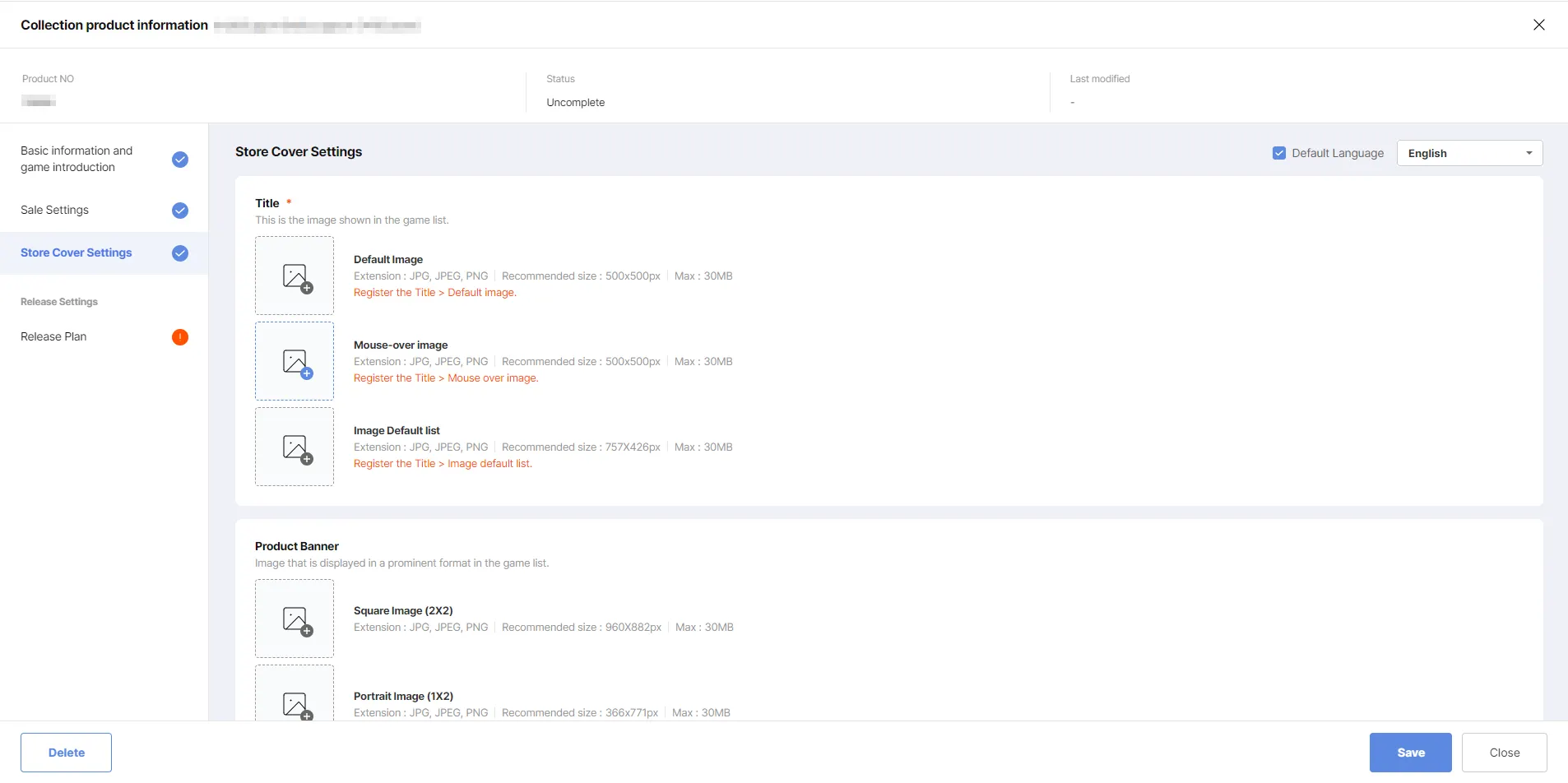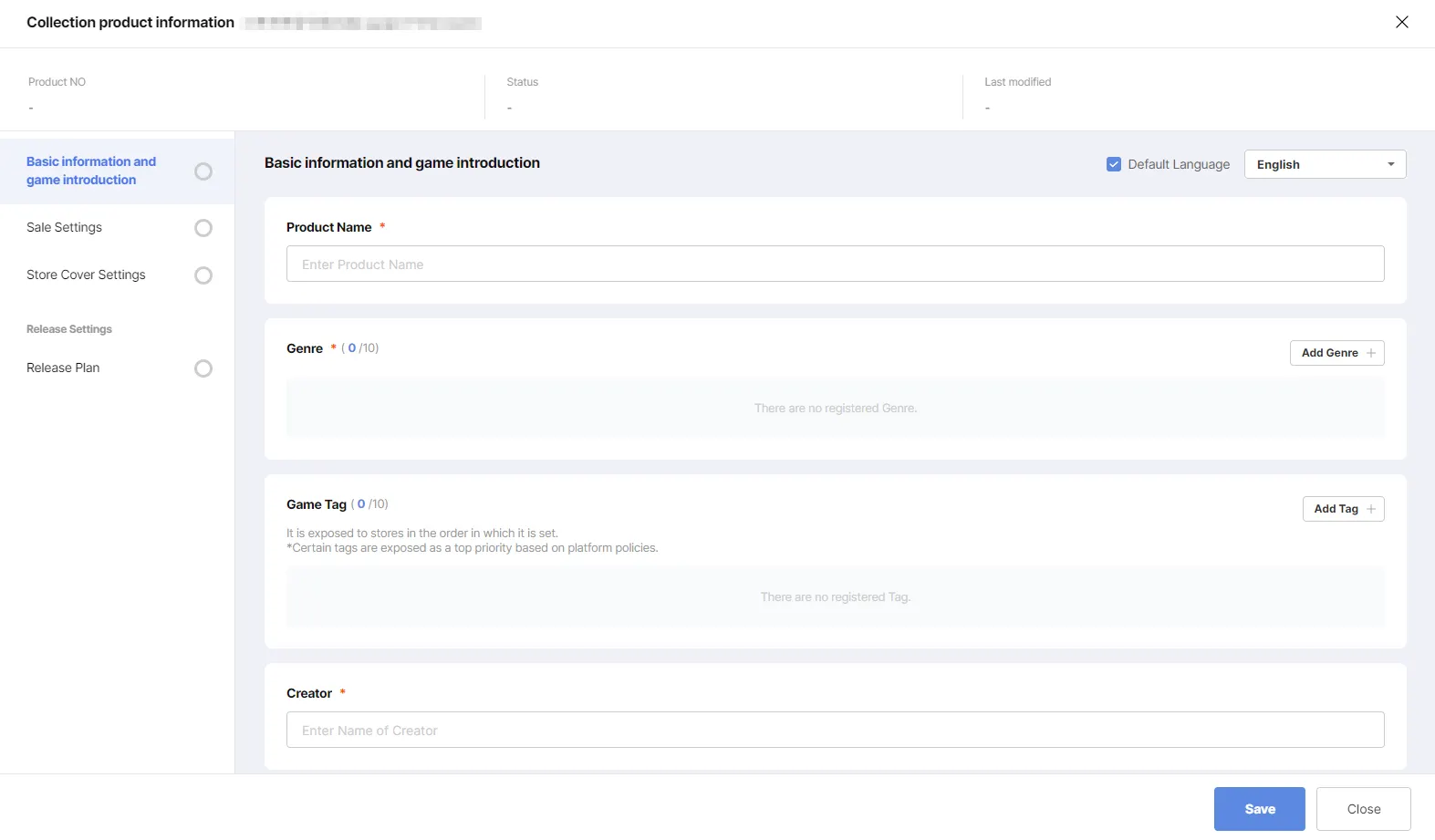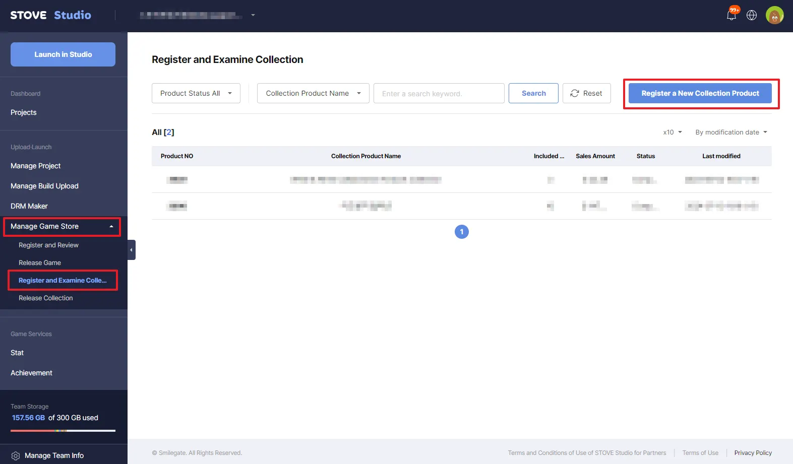 After logging into STOVE Studio, go to Manage Game Store, Register and Examine Collection, then Regsiter a New Collection Product (See below)