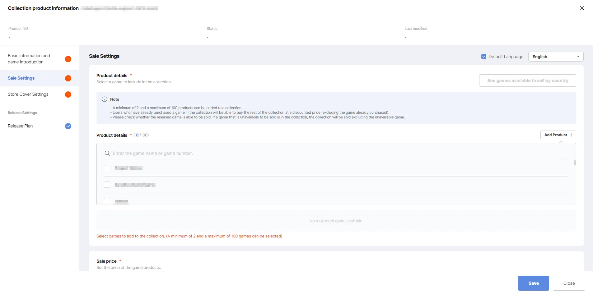 In Sale Settings, you can select which of your games can be part of the collection, only your games/DLCs can be added