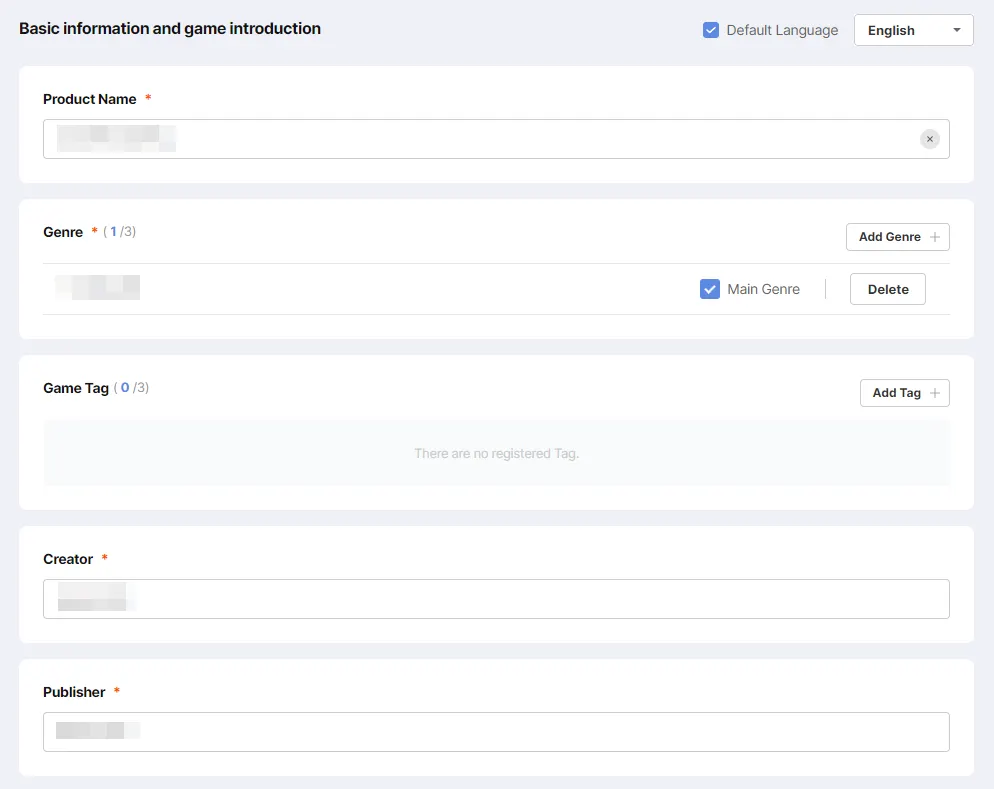 Below Genre, you can select Game Tag, here you can select the main features of the game.