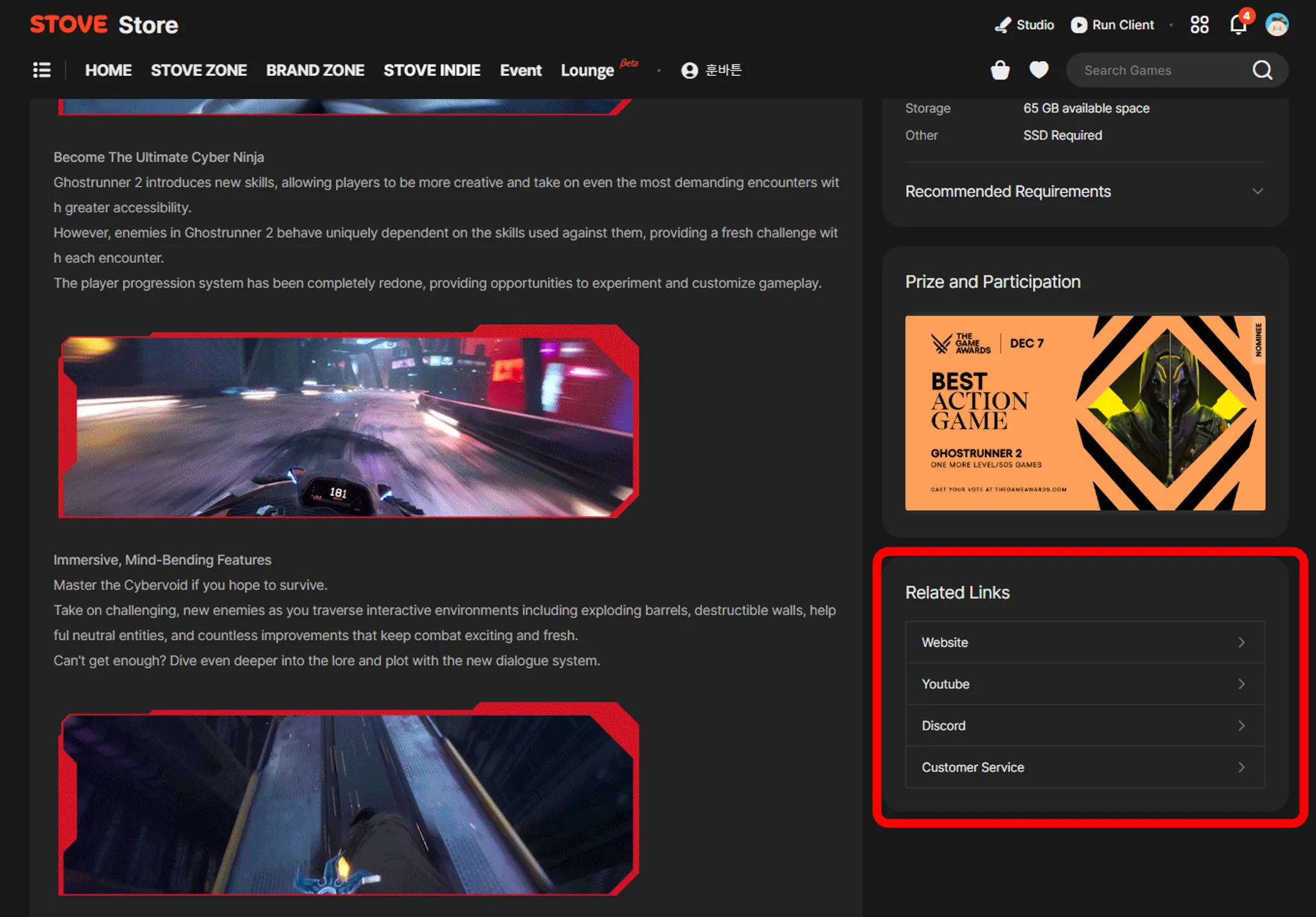 You can add a link or shortcut displayed on the right side of the game page (such as Discord)