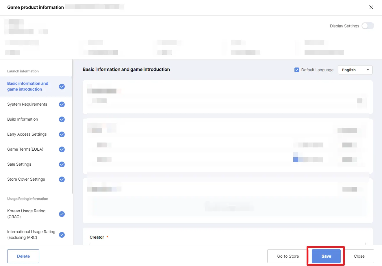 By clicking on the game, you can now edit the store page.