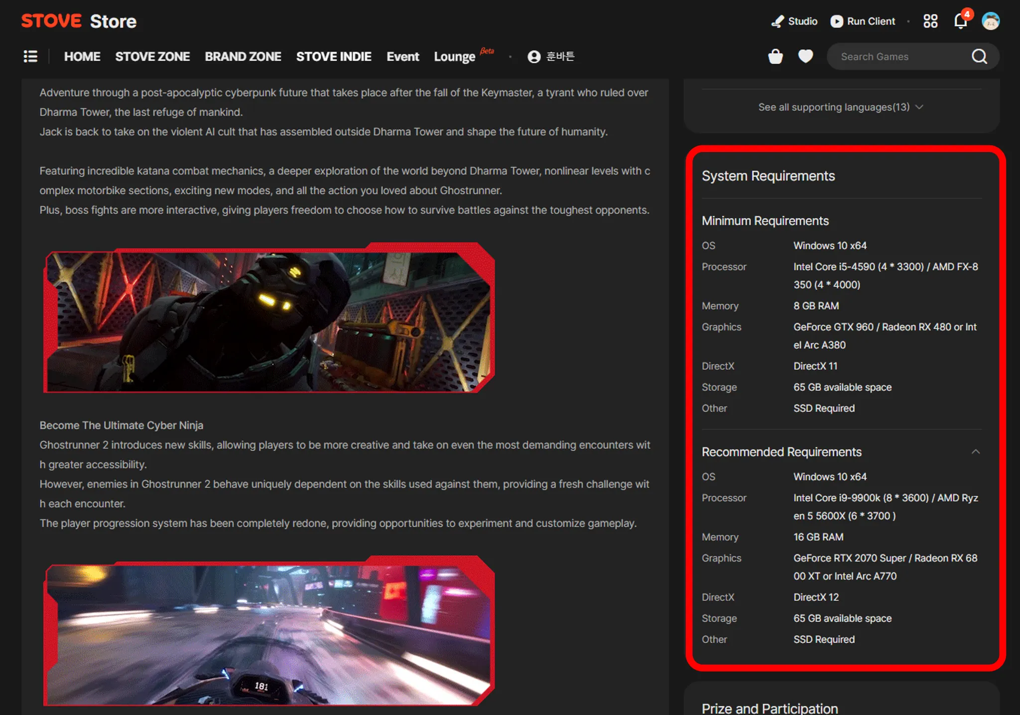 Note: Every game registered on STOVE Store has to have minimum requirements, and recommended requirements are only optional.
