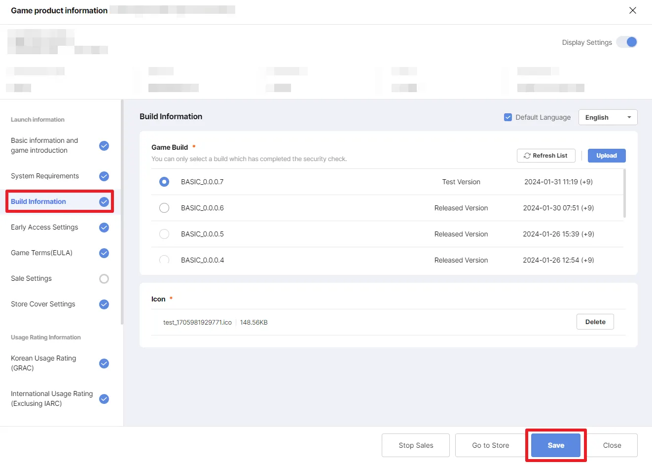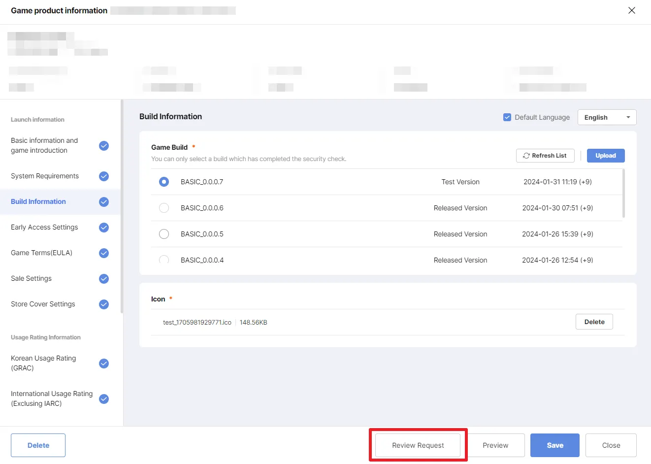Note: Normally, newly uploaded build is displayed as Test Version