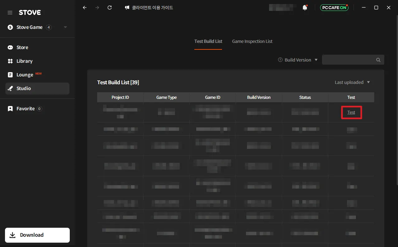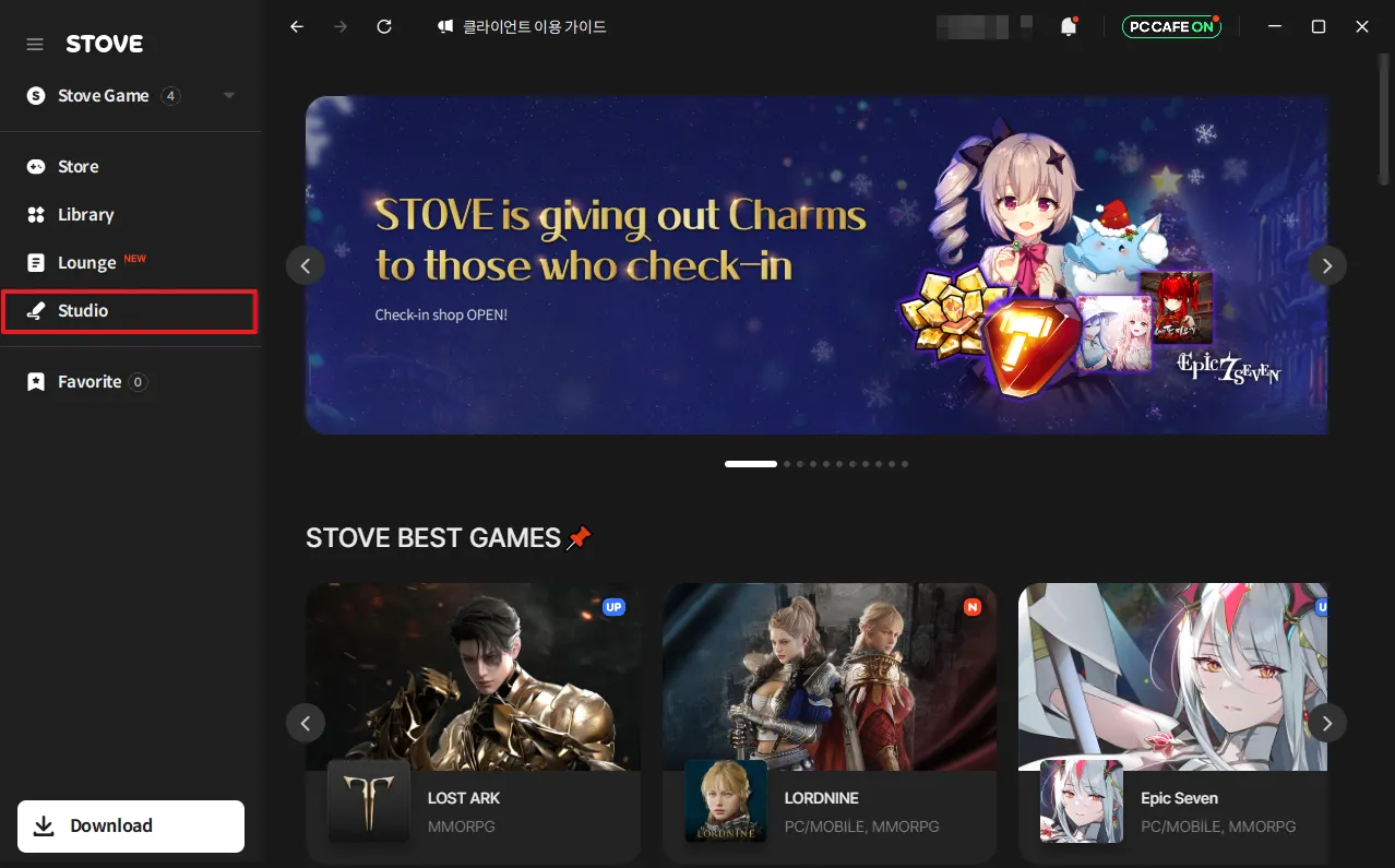 1. Login to STOVE PC Client, go to Studio (on the left) (see below)