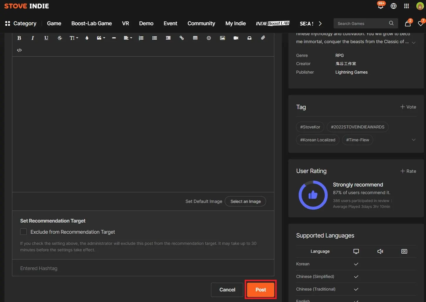 If you encounter any issues when writing a post, do not hesitate to contact STOVE Store.