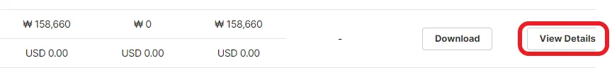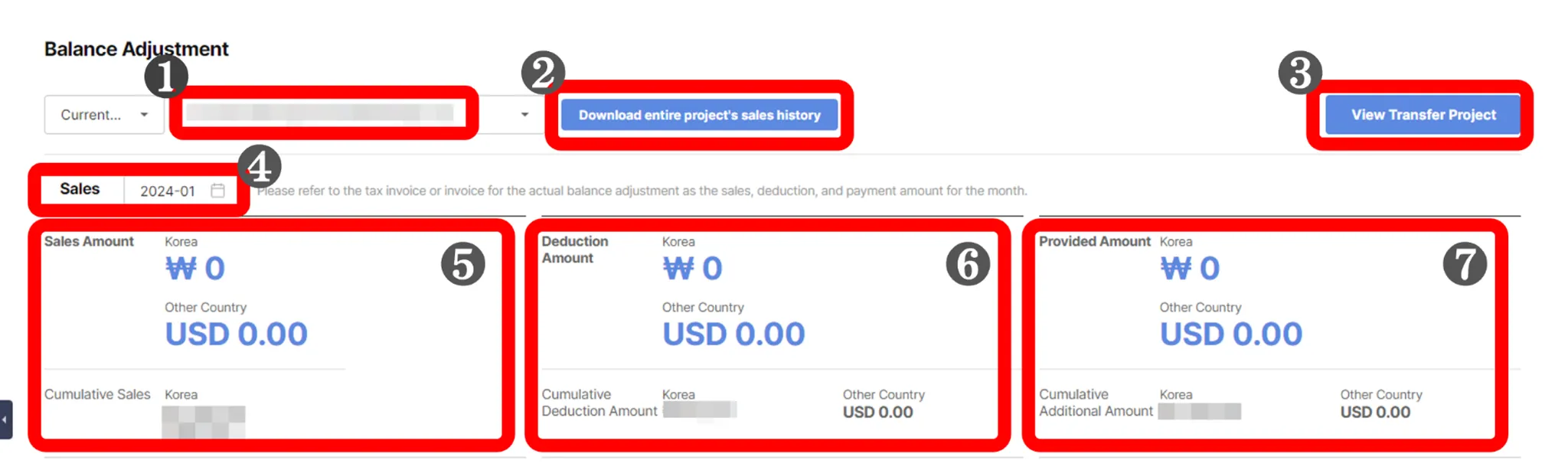 ❺ | You can view total sales for the month, (KRW and USD are displayed separately)