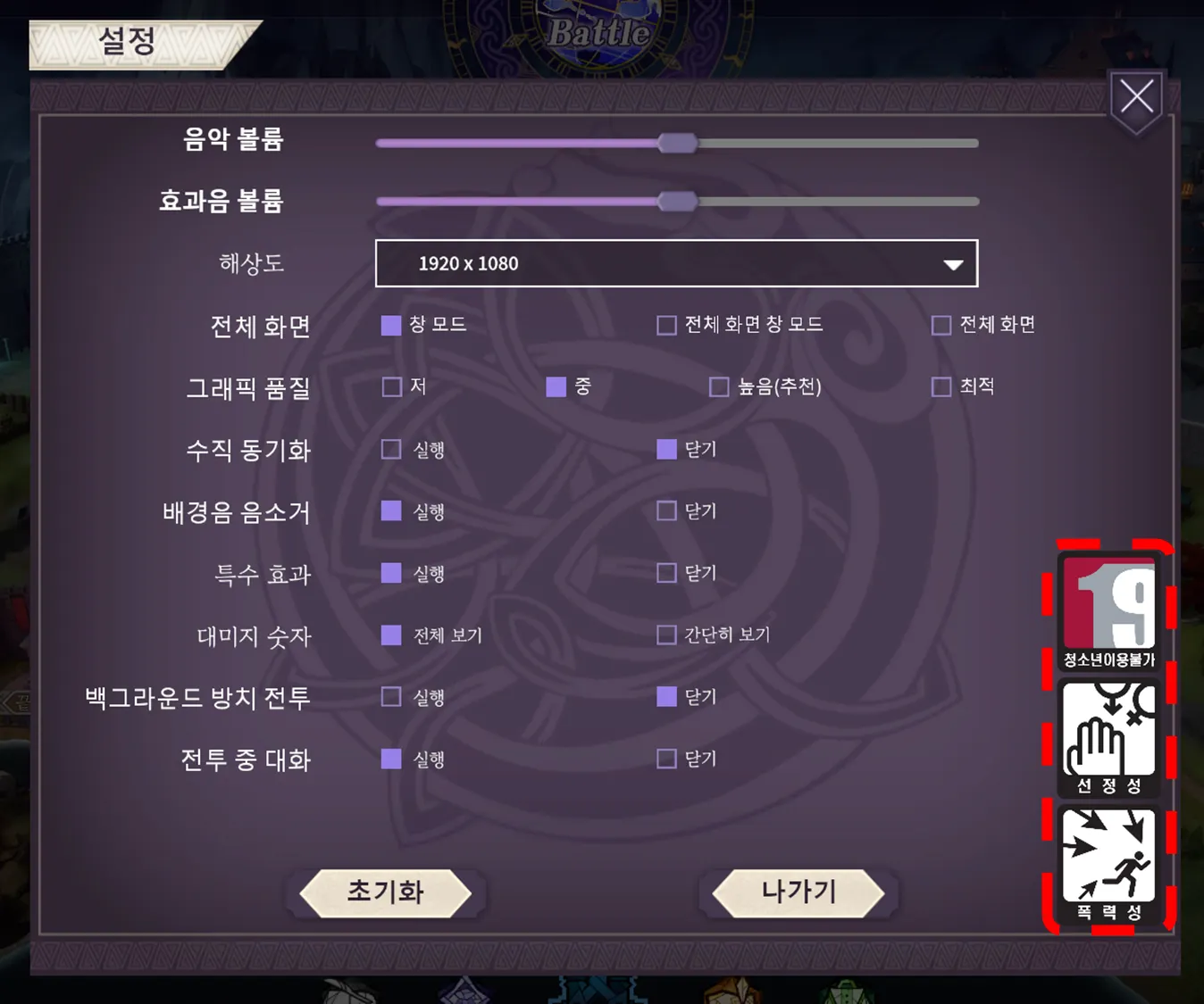 If your game is an online game and is serviced in Korea, it is strongly advised to display the game rating in the game client. Below is the sample screenshot on how the game rating should be displayed.