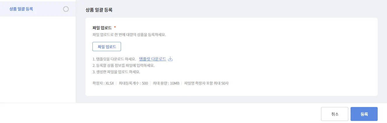 Studio에서 제공하는 템플릿에 양식에 상품을 기입하여, 일괄 등록할 수 있습니다.