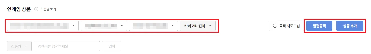 우측에서 일괄 등록, 또는 상품 추가를 (개별 등록) 선택하여 상품을 등록할 수 있습니다.